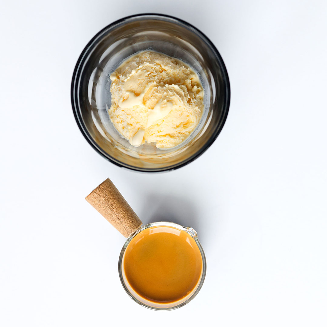 dessert drink made with a shot of espresso poured over a scoop of vanilla ice cream